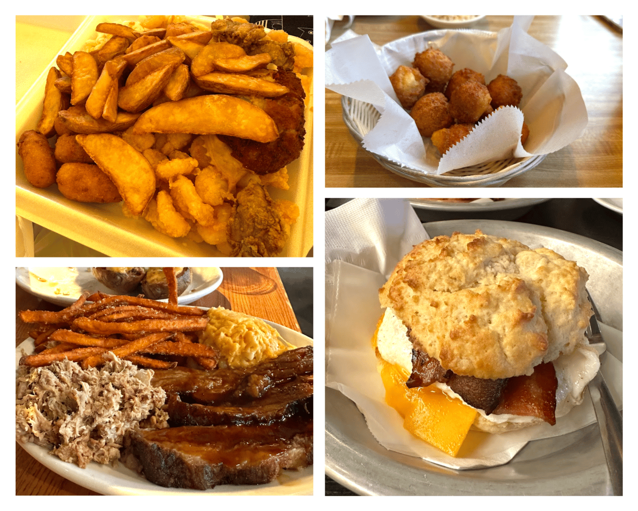 Looking around at the food options, it was clear that the food that was most accessible was also not the healthiest. At restaurants, Christine and I could place a single order for the two of us and usually have leftovers. At barbecue or diner spots, it also seemed to be standard practice to get a complimentary appetizer of hush puppies aka fried cornbread.